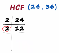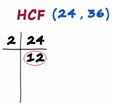 2 times 2 is 4 and 4 times 3 is 12 the highest common factor of 24 and 36 is 12
