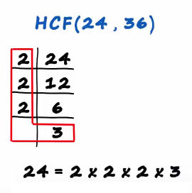 We want to find the HCF of 24 and 36 what we need to do is very simple, we just have to reduce the numbers to it prime factors first