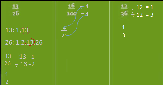 And so we will take that number thirteen the greatest common factor and we will divided both the numerator and denominator by 13 this is just reducing down a fraction into lowest terms.