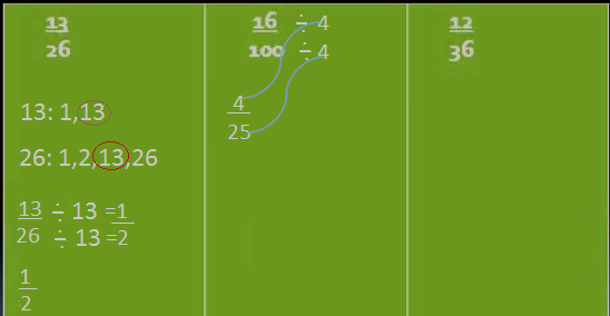 Now we have the fractions 12 and 36 we have to find the greatest common factor there are lot of common factors between these two they have common factors 2, 3, 6 and 12.