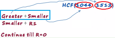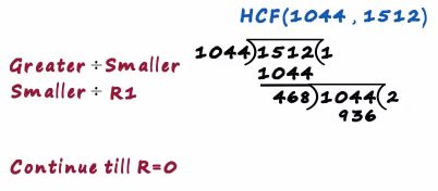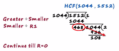 We try to find the hcf of 1044 and 1512 in the first step we divide the larger number by the smaller number