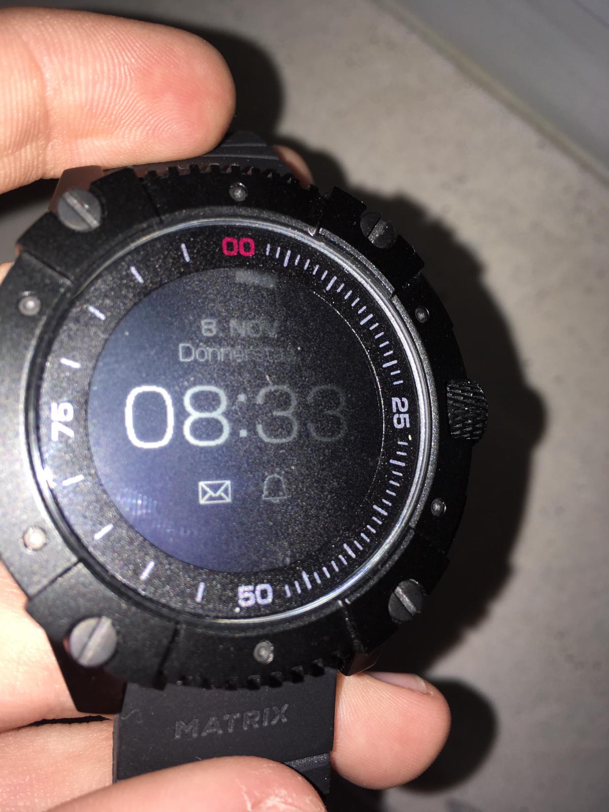 Deswegen habe ich am selben Tag nach der Ausbildung die Uhr auf das beigelegte Ladegerät gelegt. Nach 1h schaute ich mir die Uhr genauer an und sah immer noch das sie bei 8Uhr immer noch rumhängt. Dann hab ich beide Knöpfe einzeln versucht zu drücken, an dem Rad rumgedreht, nichts hat geholfen. Blieb mir nur noch eins dachte ich. Die Uhr zurückschicken und auf Reparatur oder Ersatz hoffen. Also hab ich noch 10min später eine Email geschrieben.