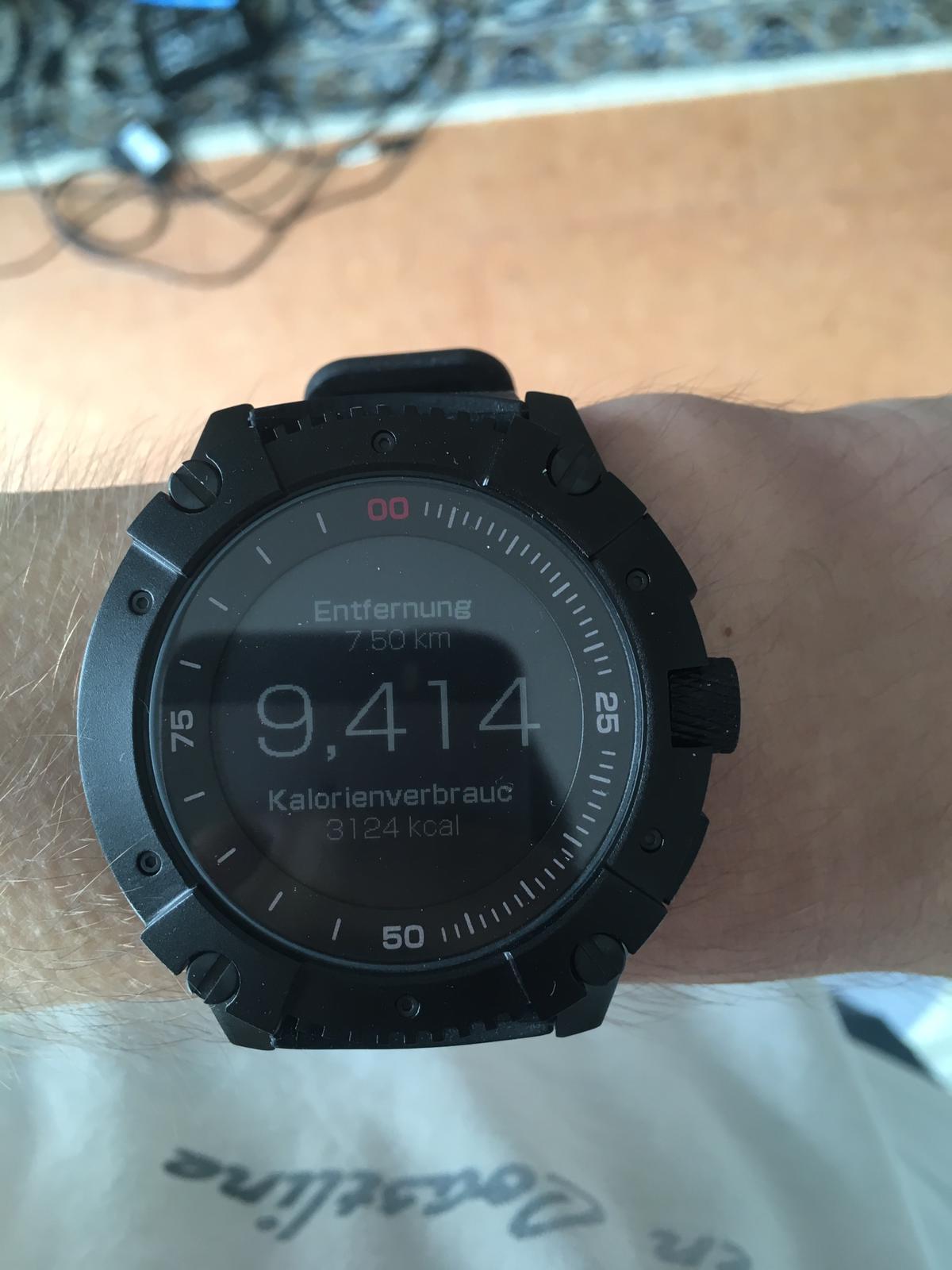 Was mir beim aufnehmen der Bilder ebenfalls aufgefallen ist, ist das die Schrittzahl und die Kalorien zahl nicht täglich zurückgesetzt wird. Ob es evtl was damit zu tun hat, dass ich meine Uhr über die Nacht ausziehe, kann ich nicht genau sagen. Ich hoffe aber sehr dass es bald auch noch behoben wird. Ist zwar ein Schönheitsfehler, aber es kann auch dann nicht benutzt werden, sich mit anderen zu messen. Um das zu machen muss man den Stand mit dem Handy Synchronisieren, und dann per App sich "messen".