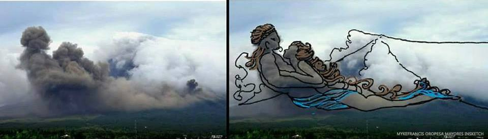 "Daragang Magayon" made her presence felt as netizens are quick to see the resemblance of the clouds surrounding Mayon Volcano as the silhouette of the fabled woman embracing a man.
