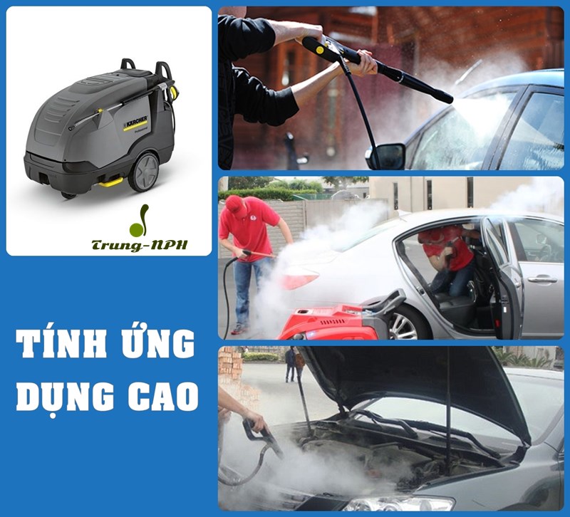 Máy khi phun rửa lên bề mặt cần làm sạch theo cơ chế làm mềm các vết bẩn, đánh bay nhanh chóng các vết bẩn, vết dầu mỡ,…bám trên vỏ xe, khoang máy dễ dàng, không cần dùng tới dung dịch tẩy rửa, vẫn đảm bảo hiệu quả làm sạch cao mà không gây hại đến lớp sơn xe, các linh kiện của xe.