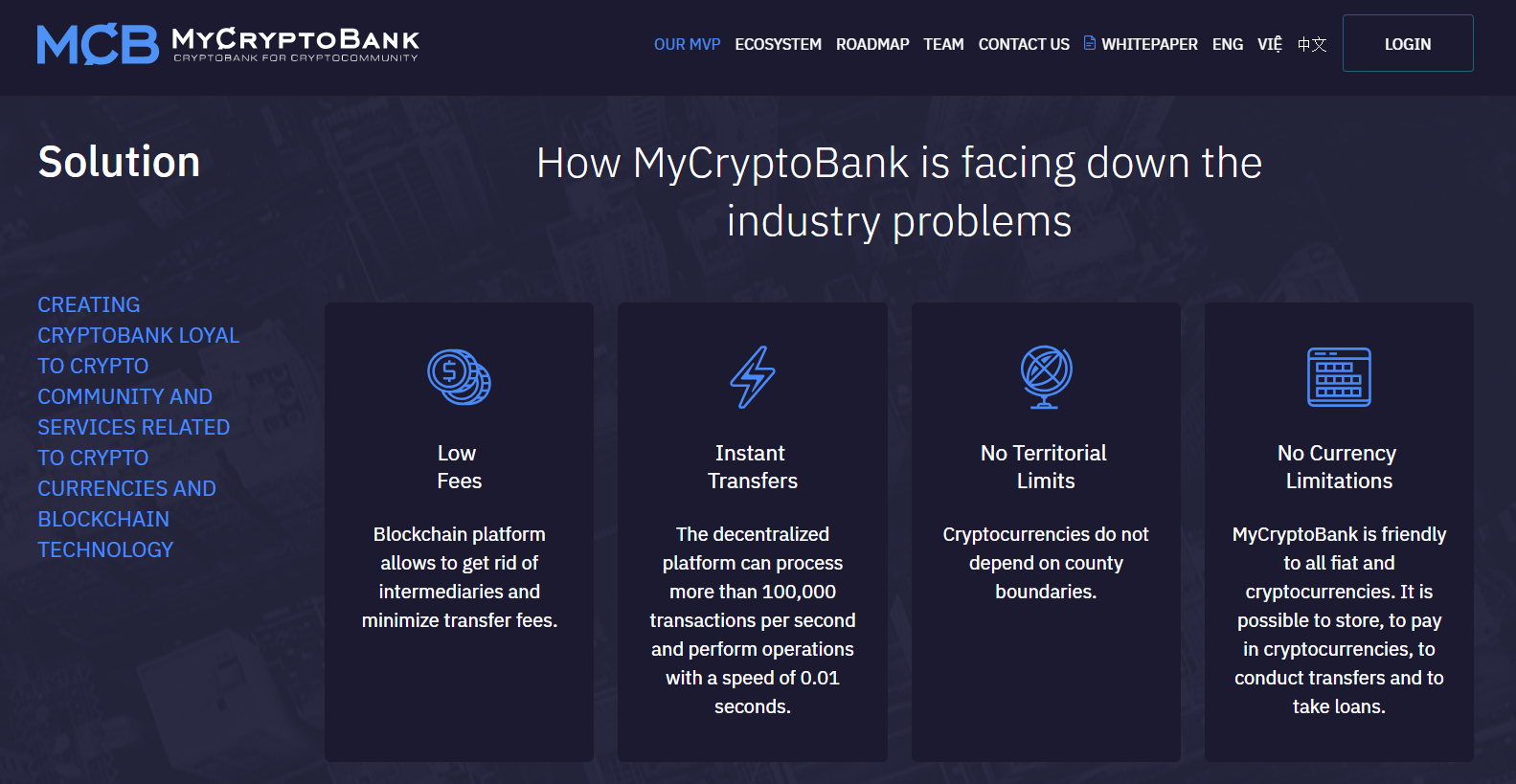 So say the developers of the platform MyCryptoBank, which solves the problems of traditional banks. Since they use the Blockchain system, the project has a number of advantages, including :