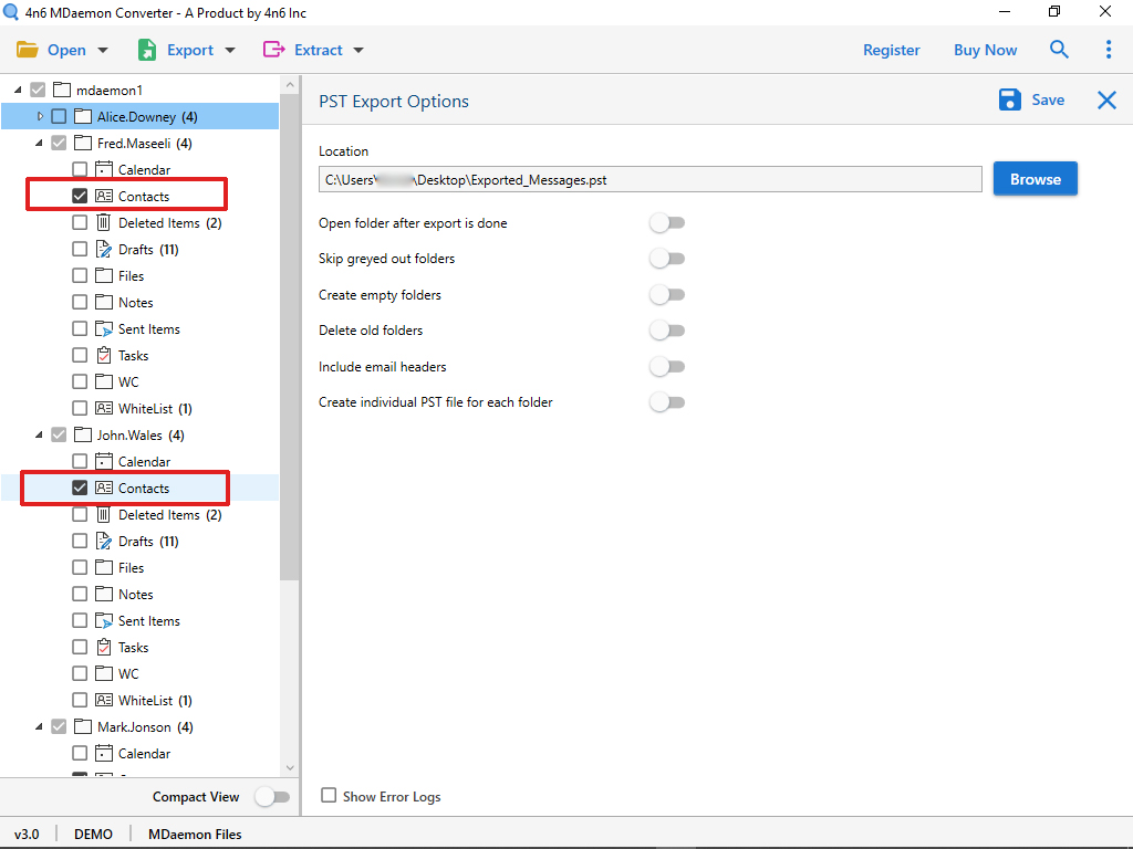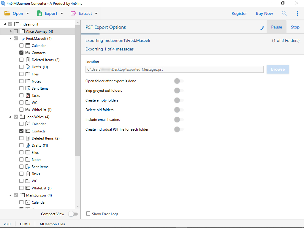 - Supports to convert MDaemon multiple user mailboxes to PST at the same time.