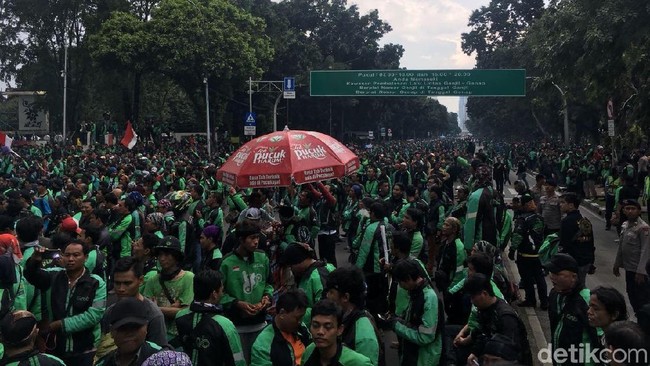 Massa pembalap taxi (ojol) isih nuduhake ing ngarep Istana. Para perwakilan demonstran ditampa minangka wakil saka Istana.
