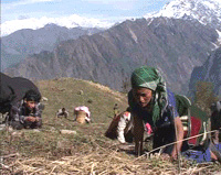With the snow melting in the Himalayas, hundreds of the villagers from Nepal rush towards the peak to collect it