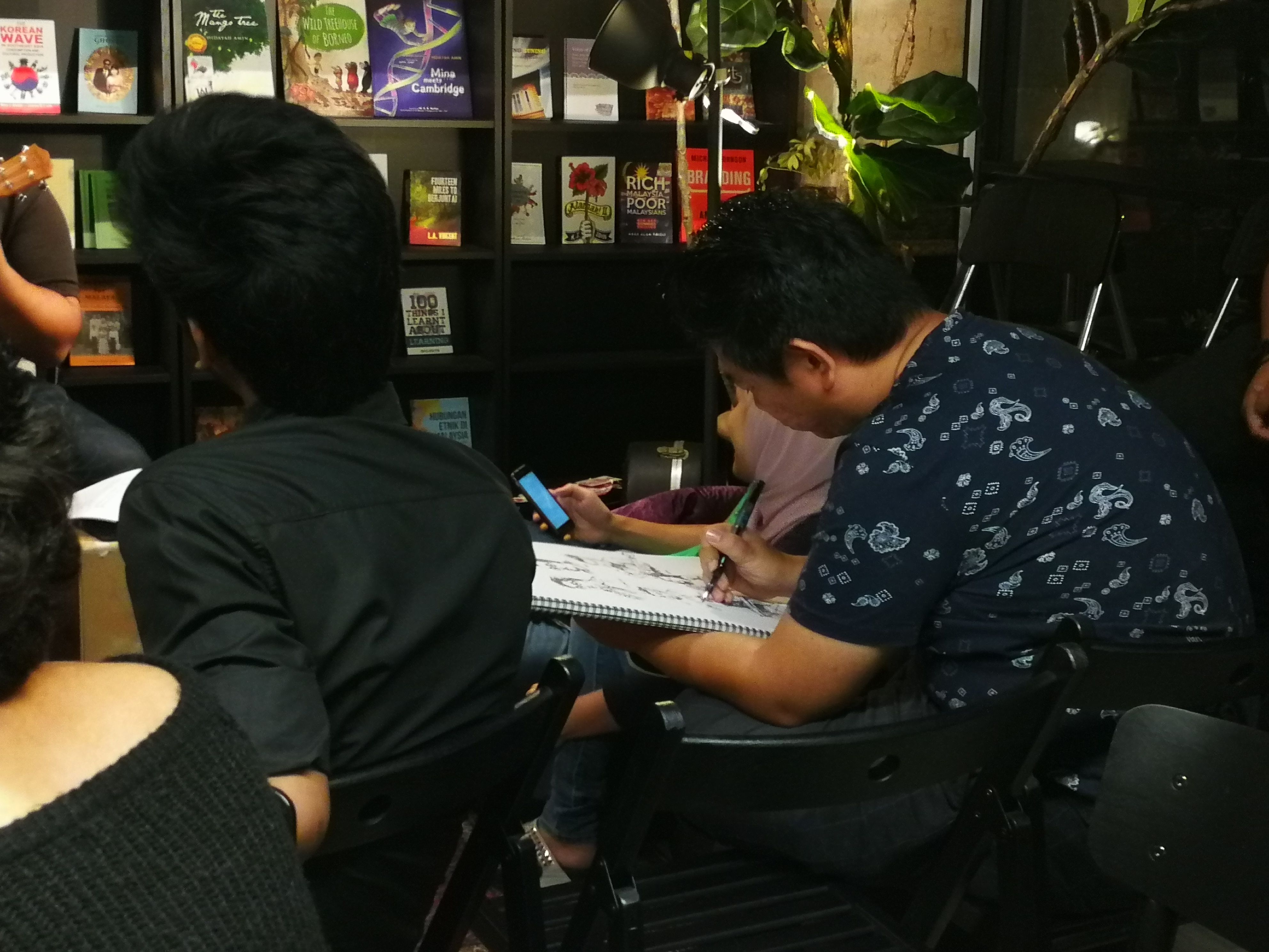 While all these are happening, I can't help but notice this talented artist in blue tshirt who seems to be focusing on his sketching.