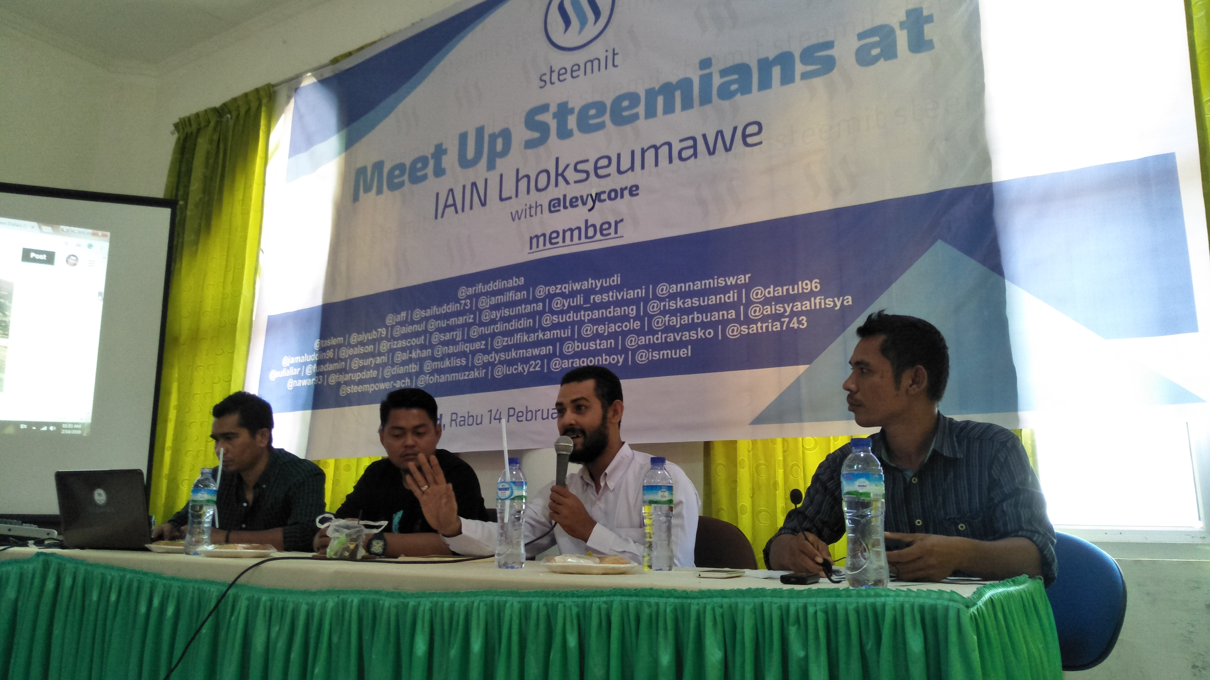 In response to some questions that arose pertaining more information from the Steemit campus storm across the universities in Aceh, Indonesia, @abduhawab, @levycore and @ayijufridar were requested to address some important points about Steemit and how it works. and hence, this resulted in another exceptional Meetup on Wednesday, February 15th, 2018.