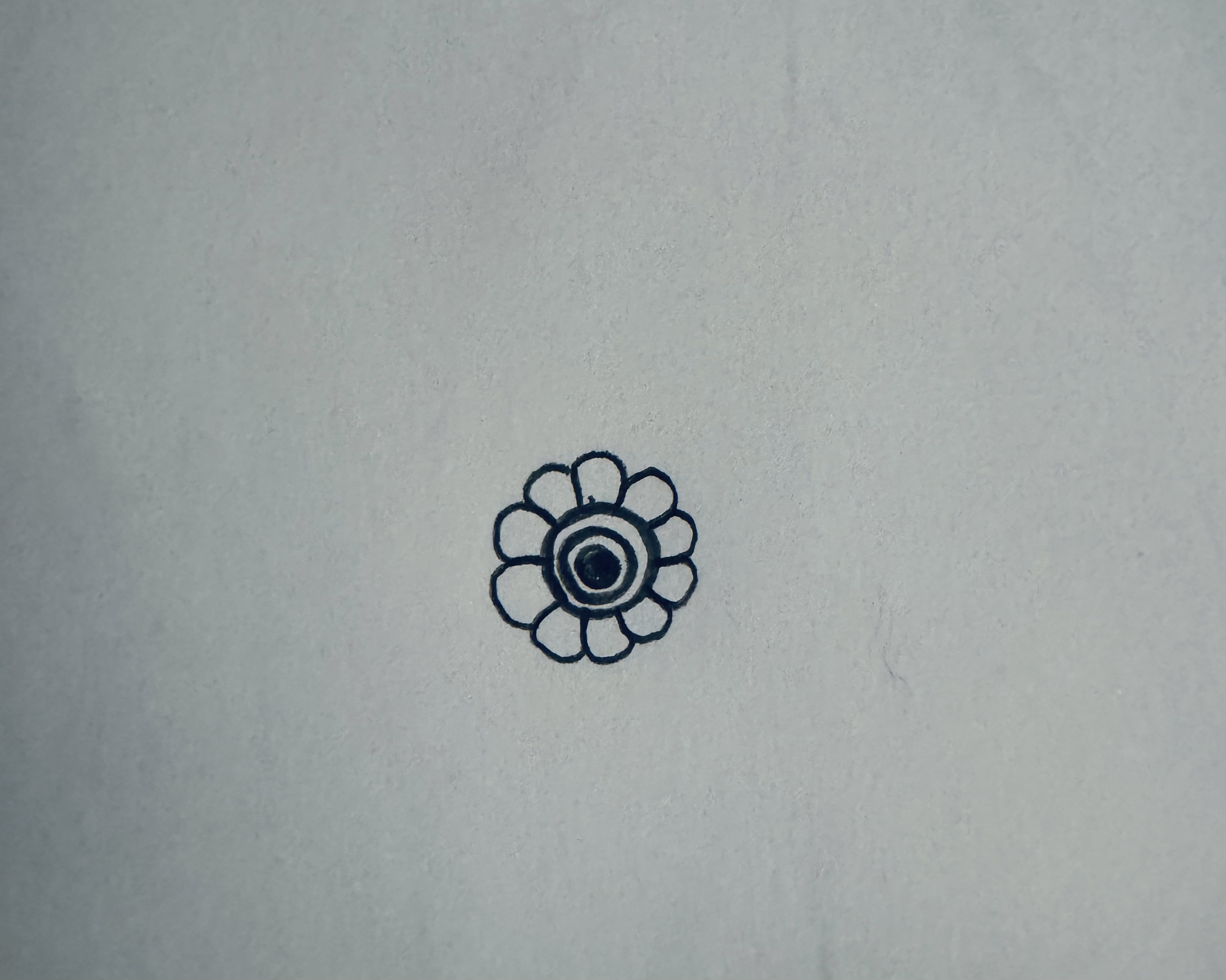 প্রথমেই ছোট্ট করে একটি বৃত্ত ভরাট করে নিয়েছি। এরপর ওই বৃত্তটিকে কেন্দ্র করে আরো দুটি বৃত্ত এঁকে নিয়েছি। এরপর বাইরের বৃত্তের চারিপাশে এভাবে ছোট ছোট কিছু পাপড়ি এঁকে একটি ফুল বানিয়ে নিয়েছি।