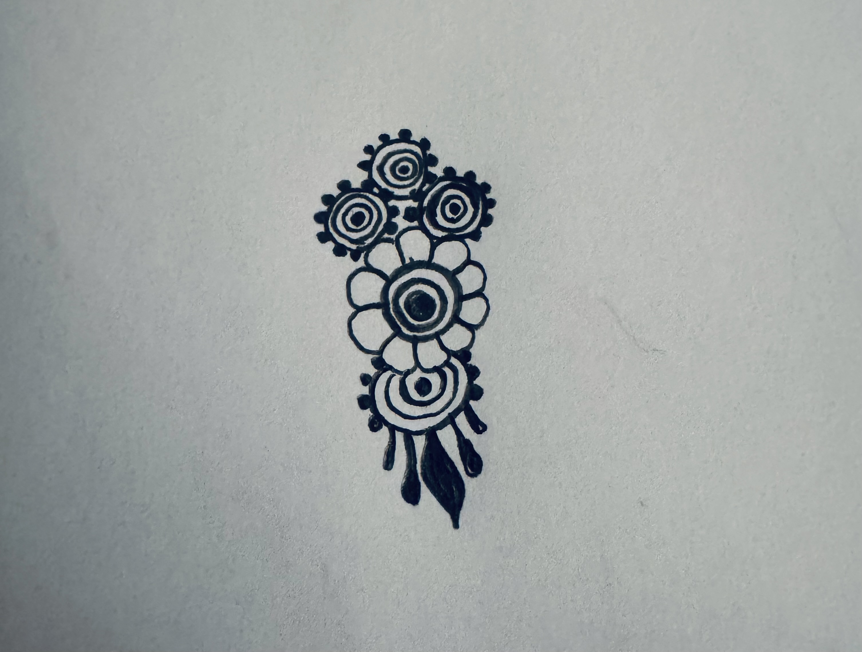 এরপর ফুলটির উপরের দিকে এভাবে তিনটি ফুল এঁকে নিয়েছি।