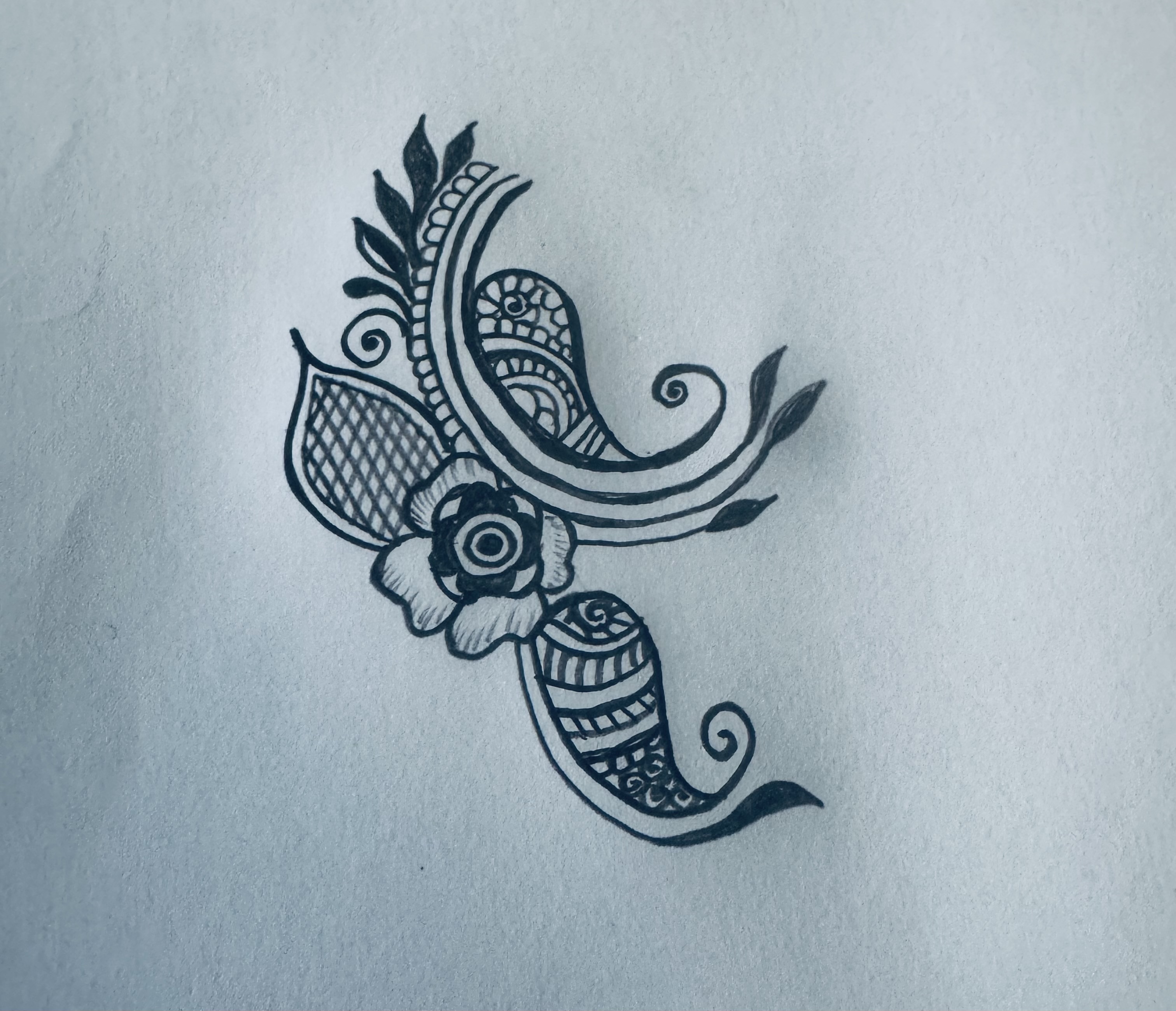 এরপর ওই ডিজাইনের সাথে লাগিয়ে একটি ফুল এঁকে নিয়েছি।