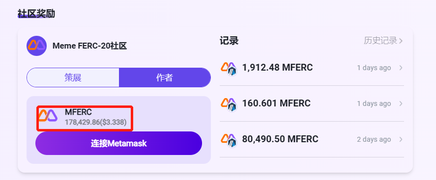 meme FERC-20质押:https://arbi.nutbox.app/#/sub-community/staking?id=0x2Fdfb2e13eD1B0691fce6eBE367643e98081A871