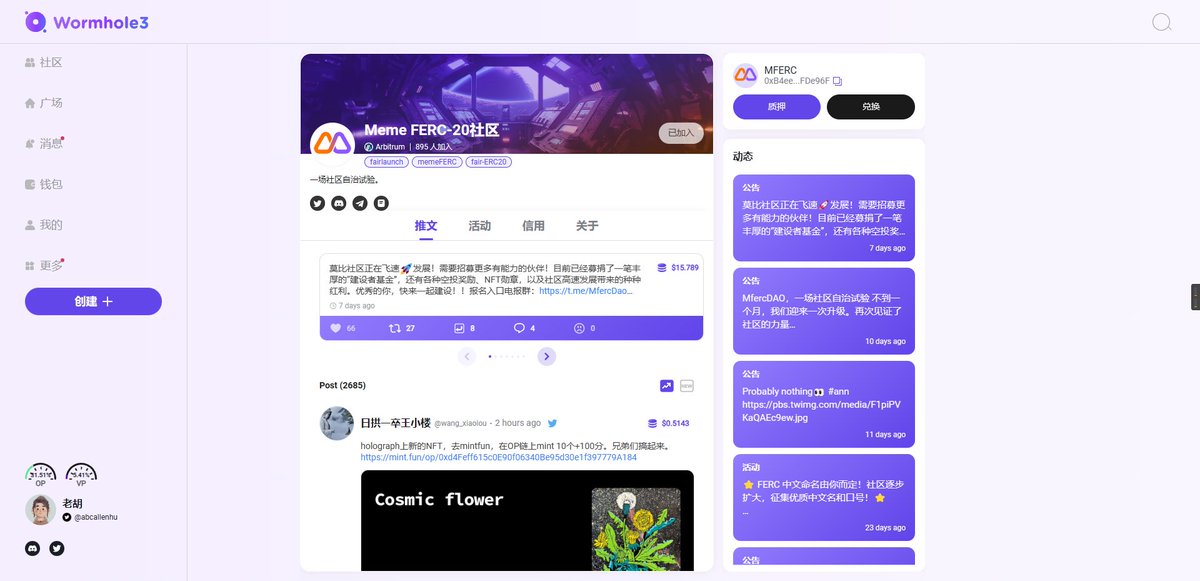 meme FERC-20社区:https://alpha.wormhole3.io/community-detail/cd490b94c333