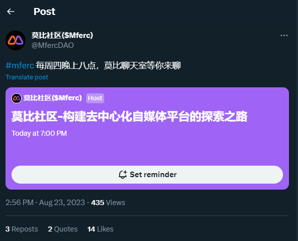 Gm fam, tonight @MfercDAO willliamborgez (60)in Meme fair ERC-20 • 3 years ago Gm fam, tonight @MfercDAO will start live on X Space. You can join the space and get the reward on space reward button (on Wormhole3 page). Set your reminder and see you! #iweb3 #mferc #ferc