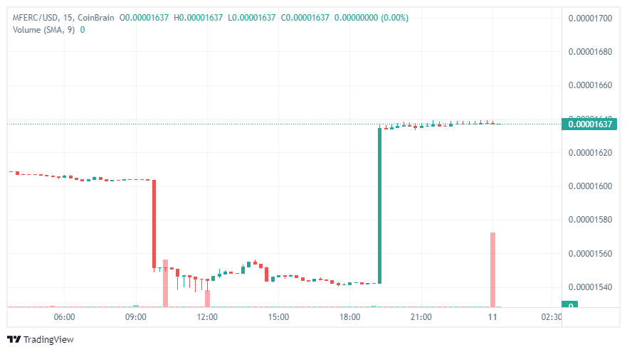 Today, FairERC20 is down 15.32% in the last 24 hours and mFERC coin can currently price is $0.00001637.