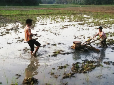 Trantor Hand made wood-based assemblies with an outomatic double engine transmission. This is an appropriate technological innovation used to plow an oil-efficient rice field without even using oil for fuel at all.