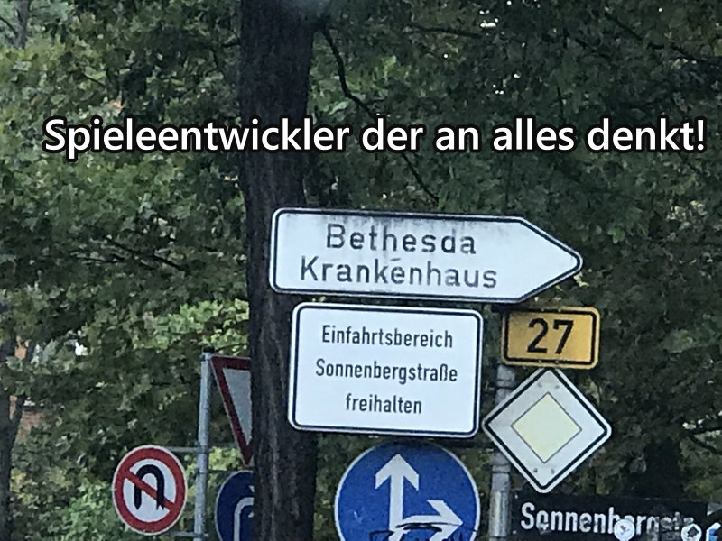 Spaß beiseite, Bethesda-Krankenhäuser findet man bundesweit in verschiedenen Städten wie Duisburg oder Wuppertal.. aber welche Leiden bei Gamern 😵 dort behandelt werden könnten, ist schon mal ein Gedanke wert 😁.. Sowas wie Sehnenscheidenentzündungen, Dehydrierung oder spontane Kopfverletzungen an Tischplatten durch Game Over.