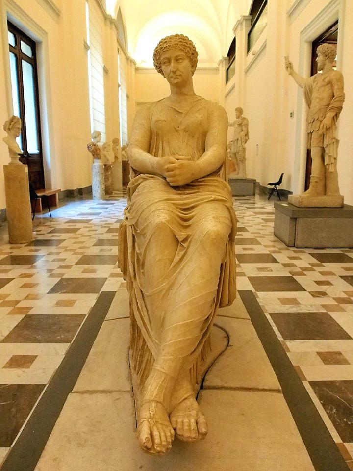 24개의 유방(황소의 고환)을 달고 서있는 에베소의 아르테미스 여신상, 가니메데스와 독수리의 대리석상, 디오메데스의 몸을 입은 루시우스 베루스, 에로스의 대리석 상 등이 있다. 황제의 갤러리에는 율리우스 카이사르, 하드리아누스 황제(위 사진) 등의 두상과 네로 황제의 어머니로 네로에게 살해 당한 소 아그리피나의 조각상이 있다. 헤라쿨라네움에서 출토된 로마의 귀족 ‘파피리’의 유물 중에는 주자, 아테나, 앉아 있는 헤르메스가 있다.