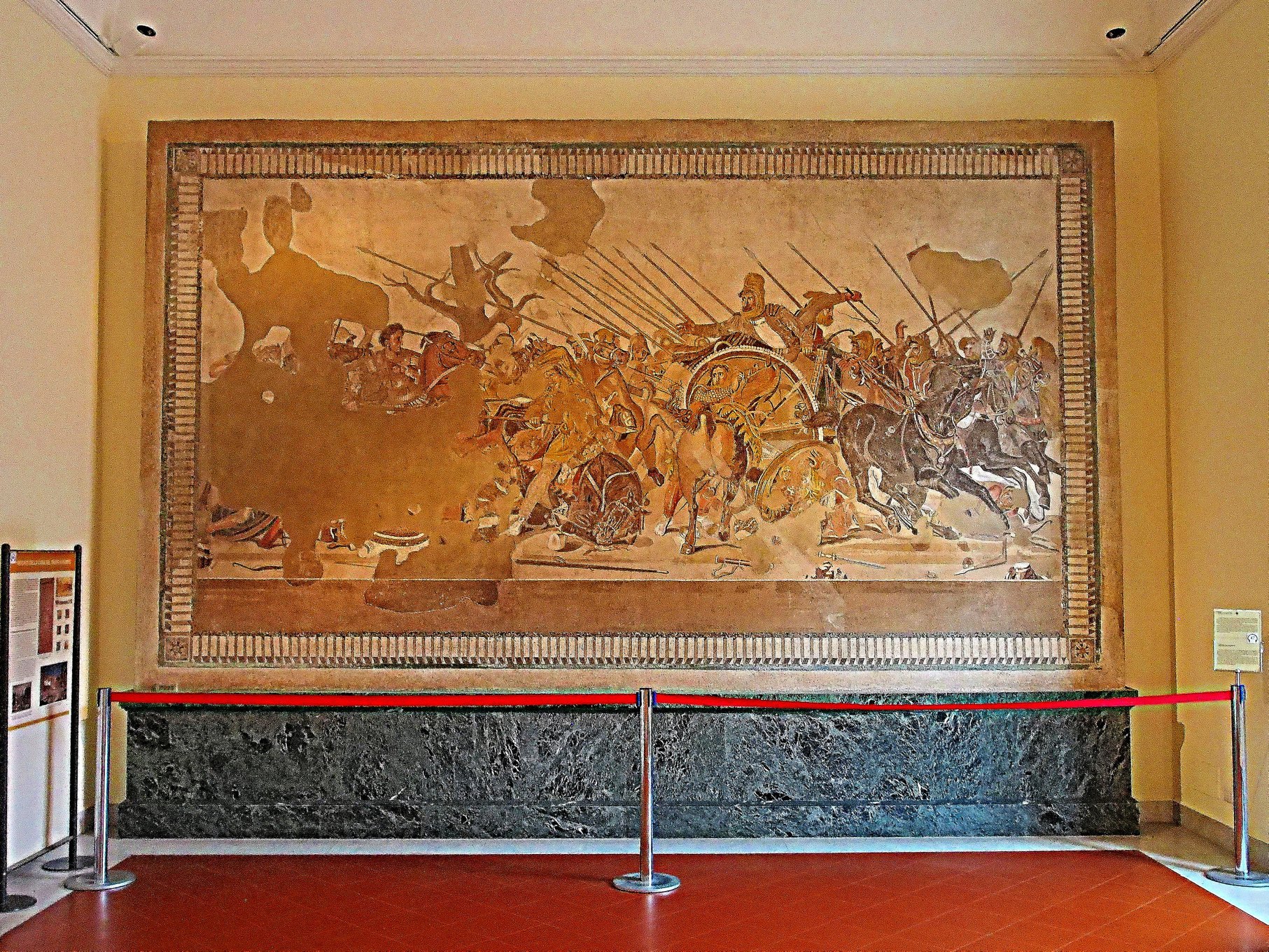 Faun의 집에서 발견된 BC 333년 알렉산더 대왕과 다리우스 3세의 전투를 묘사한 알렉산더 모자이크 작품. 잇소스(Issus) 전투는 기원전 333 년에 시작된 전쟁으로 Faun의 집이 지어지기 불과 150 년 전의 일이었다.