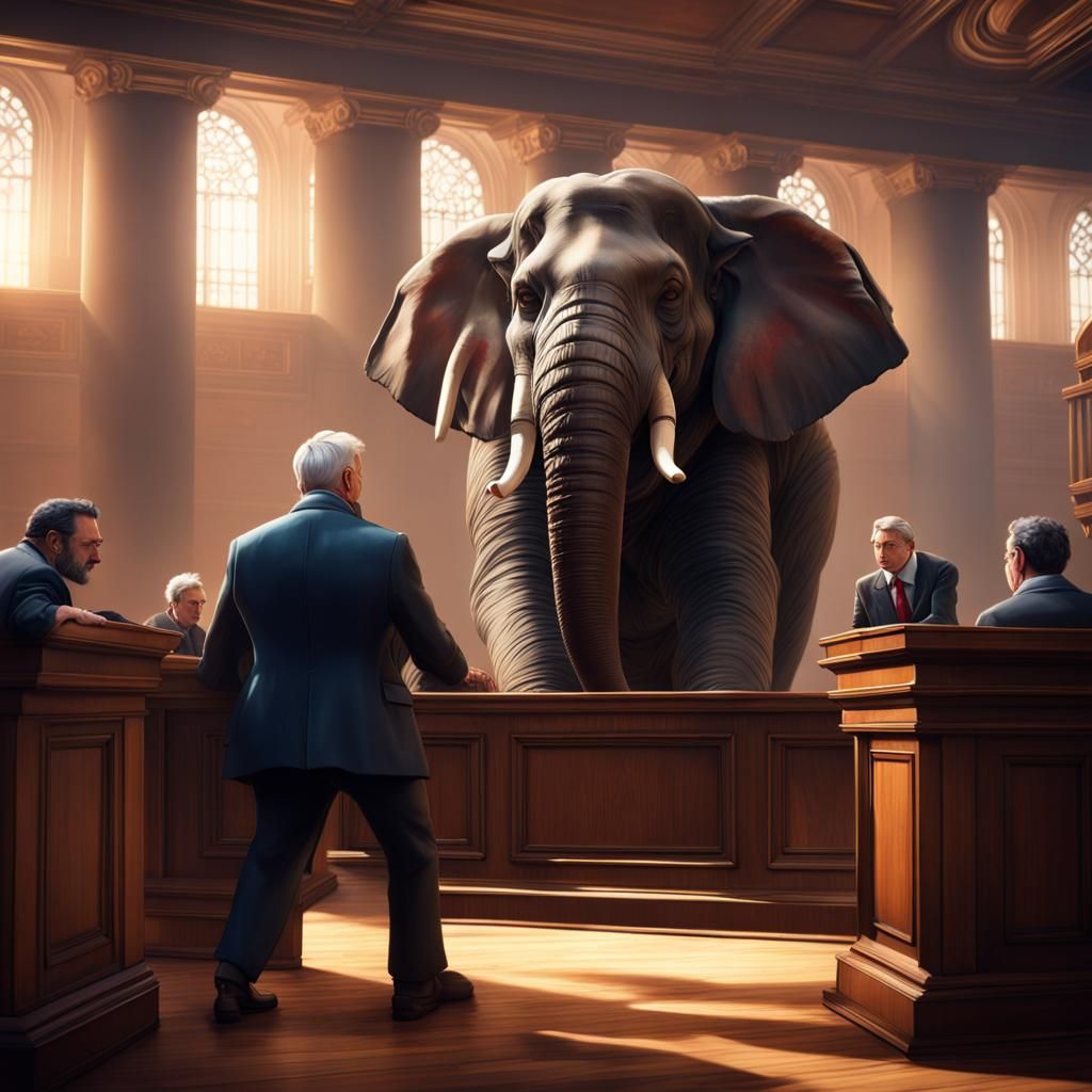 The NightCafe challenge is "elephant." I thought it would be useful to have a #meme with people in a courtroom trying to ignore the elephant in the room. I tried a variety of filters, but they all created images of people confronting the elephant such as the image below.