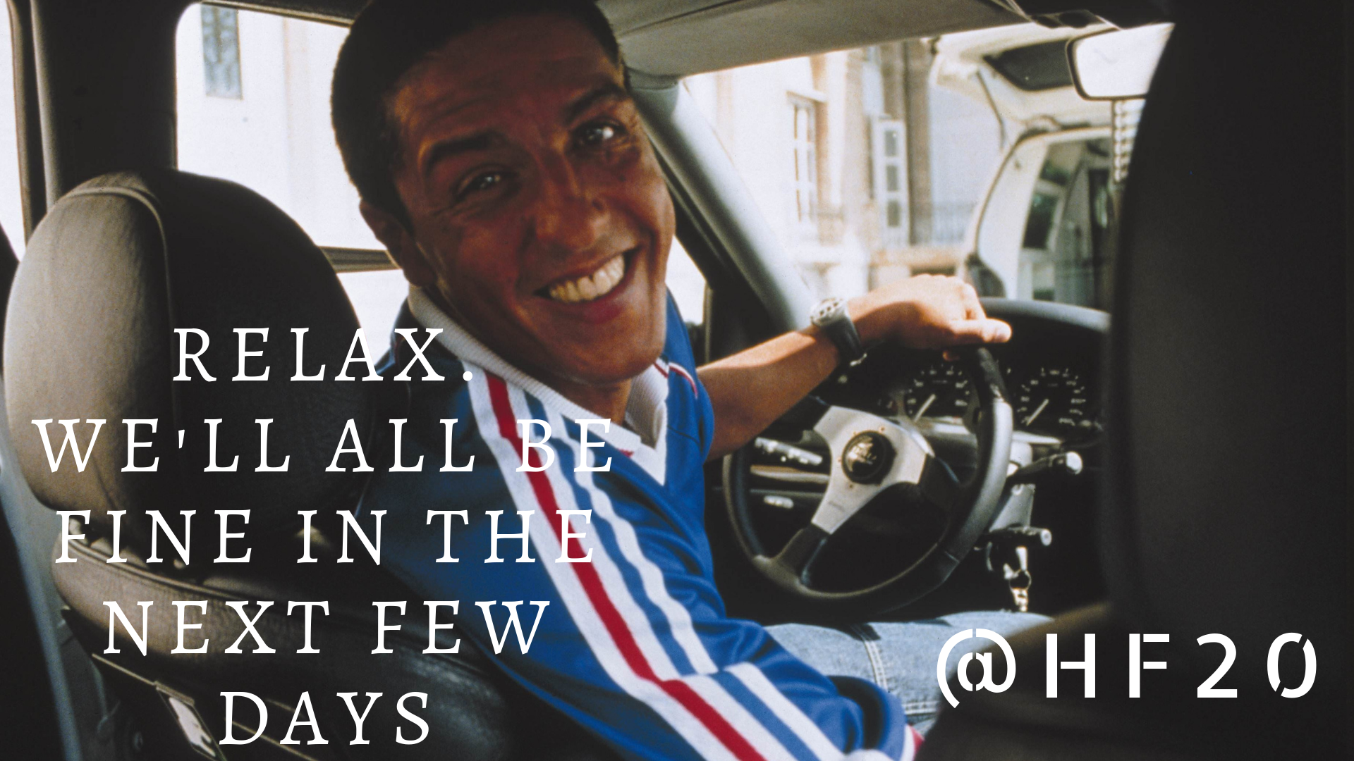 The thing is nobody joked about the trunk of the car in front being opened and how that could relate that strange smile :P