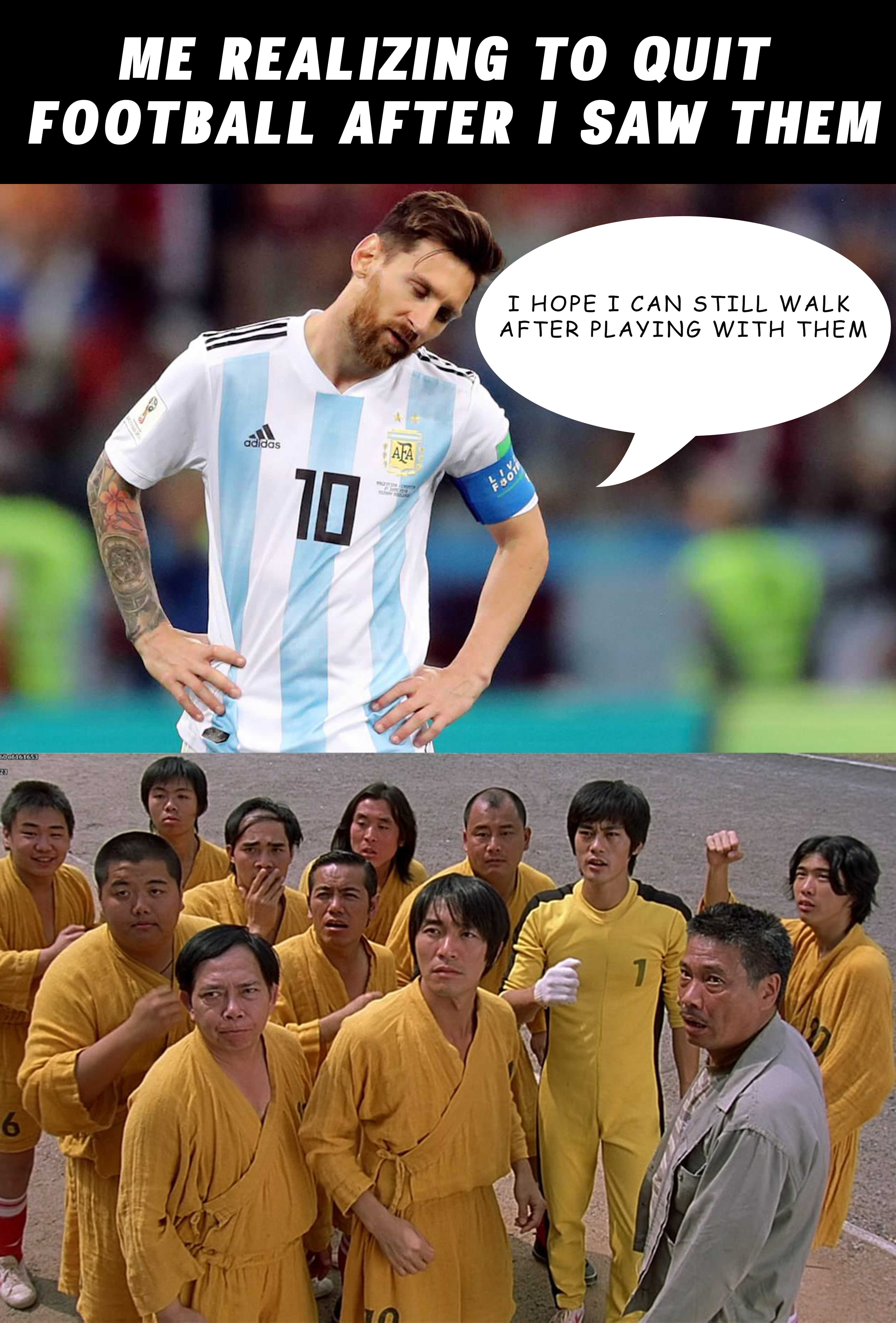 Meme Challenge #75 - Entry 1kentbaluncio (-2)(1)in #memechallenge • 8 years ago Football is fun but after I watched the movie Shaolin Soccer it made me realize FOOTBALL IS FUNNIER. This is my first entry for the meme challenge. Hope you like it!! #meme #fun #contest