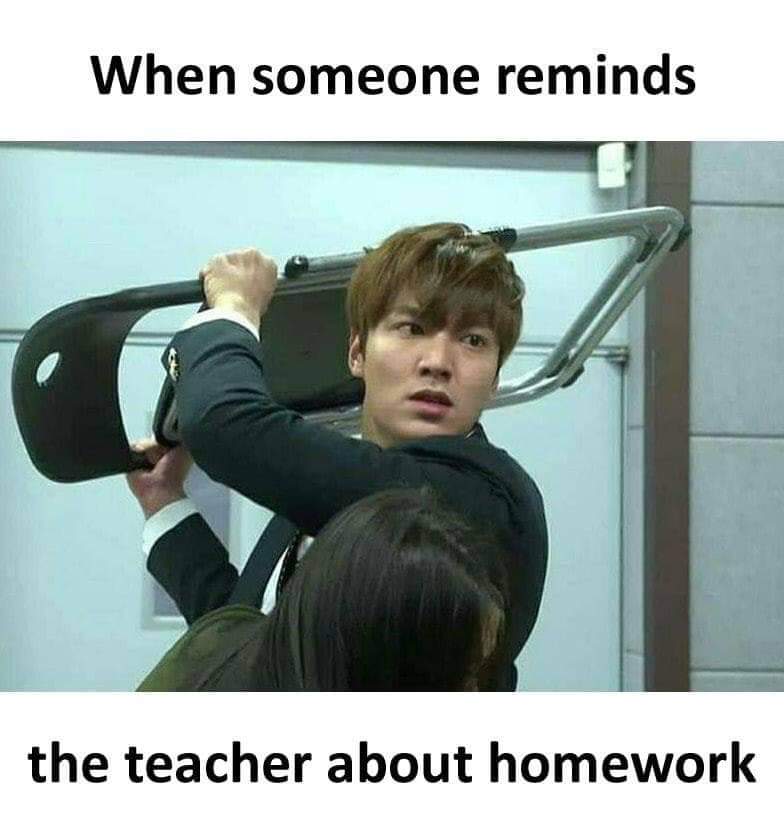 The best situations in school were when noone had the homework except the kid reminding the teacher and you :D you got the benefits without anyone hating you for it!