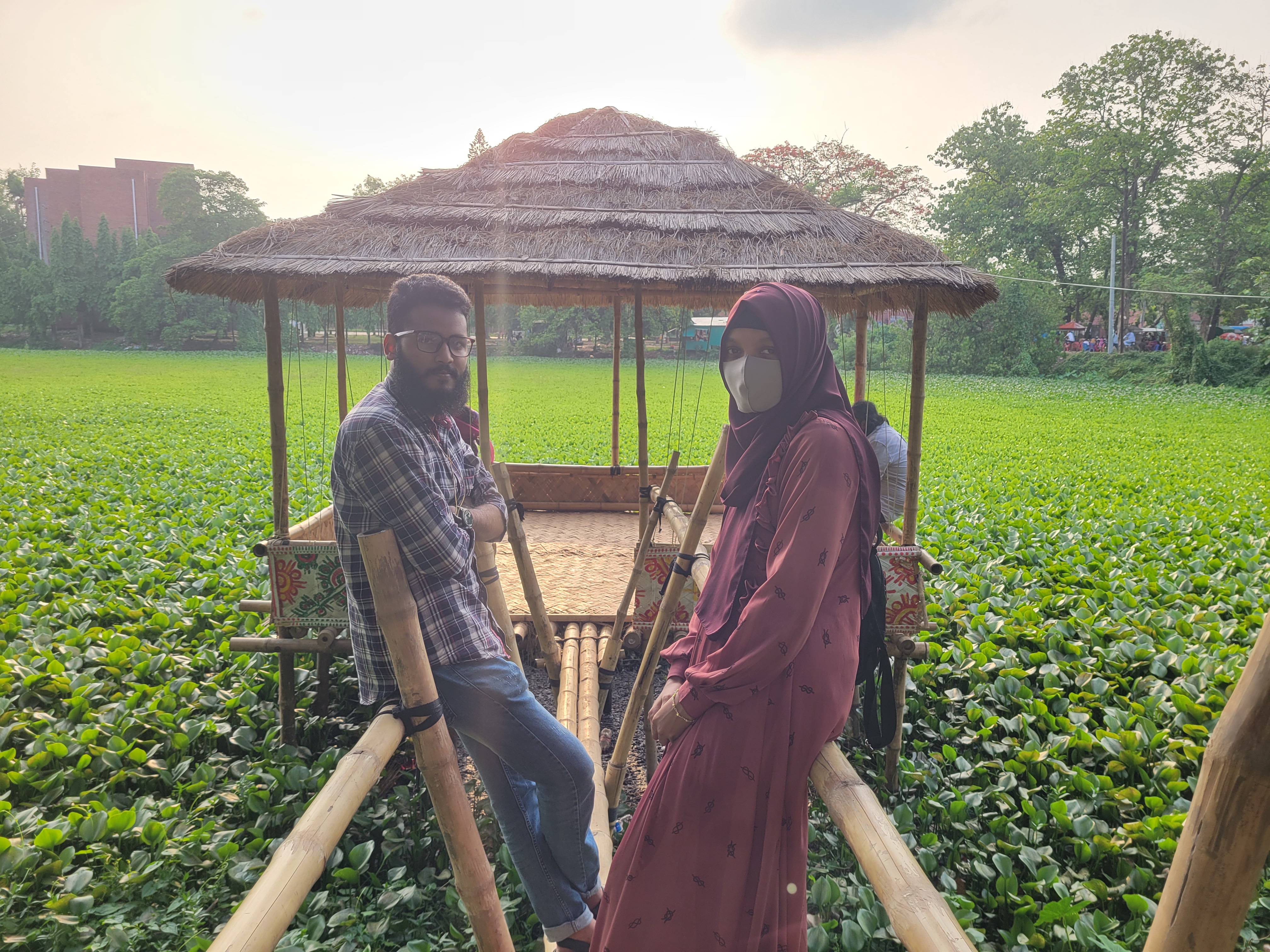 যততা হাইপ এই খাবার নিয়ে ততটা মজা ছিল না ভর্তা গুলো। খাবার শেষ করে বিল দিয়ে বের হয়ে গেলাম গেলাম। ওখান থেকে রিক্সা নিয়ে আবার আমরা ভিতরে চলে গেলাম। ওখানে গিয়ে পুকুর বসার জায়গা ছিল ওখানে বেশ কিছুক্ষণ বসে থাকলাম। গরমের সময় ছিল তো হাল্কা বাতাস ছিল আসলে খুব ভালো লাগছিল। আমিও যাওয়ার সময় দুই রকমের পিঠা নিয়ে গিয়েছিলাম পাটিসাপটা নকশা পিঠা। ওখানে বসেই আমরা সবাই মিলে এগুলো খেয়ে নিলাম। ওখান থেকে বেরিয়ে টুকটুক করে হাঁটা শুরু করলাম।