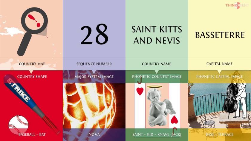 Major System, the most popular memory technique for numbers. This series will assume that you have already learned this technique. But even without it you will be able to connect country with capital and find it on the map. We are currently in South America. Saint Kitts and Nevis got the number twentyeight on our list.