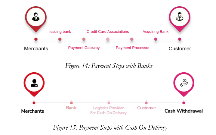 MenaPay aims to break a long chain of payment. In credit card payment, a chain like “Merchants - Issuing Bank - Payment Gateway - Credit Card Associations - Payment Processor - Acquiring Bank – Customer” is followed. In cash, there is a chain in the form of a “Merchants - Bank - Cash Logger - Customer - Cash Withdrawal”. However, MenaPay, promises a short chain like “Merchants – MenaPay – Customer”.