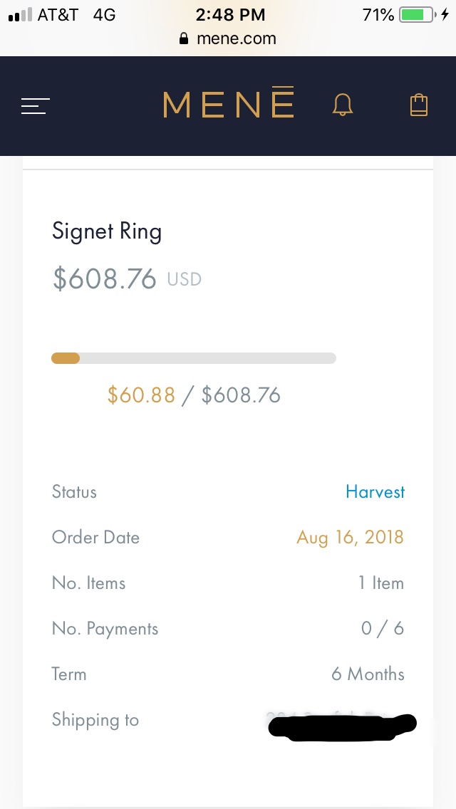After making these payments over 6 months, she will have her signet ring (which she’s wanted forever).