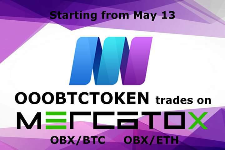 OOOBTCTOKEN (OBX) market now open on mercatox.com