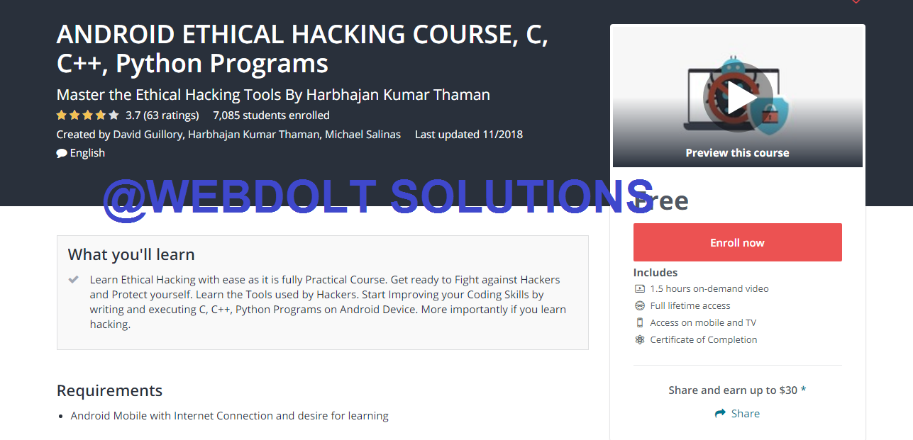 FREE COURSE ANDROID ETHICAL HACKING COURSE, C, C++, Python Programs