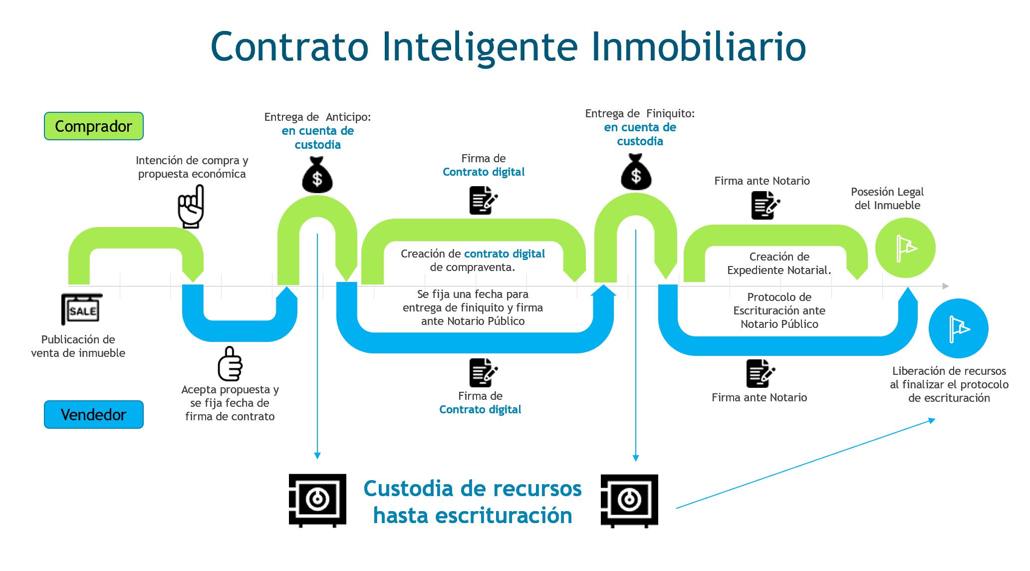 Los compradores y vendedores firman Contratos Digitales que validan su identidad y validan los acuerdos de forma no repudiable. Esto significa que los participantes firmarán digitalmente el contrato de compraventa con firma electrónica avanzada lo cual disminuye el riesgo de robo de identidad y evita, en gran medida, que los documentos sean apócrifos.