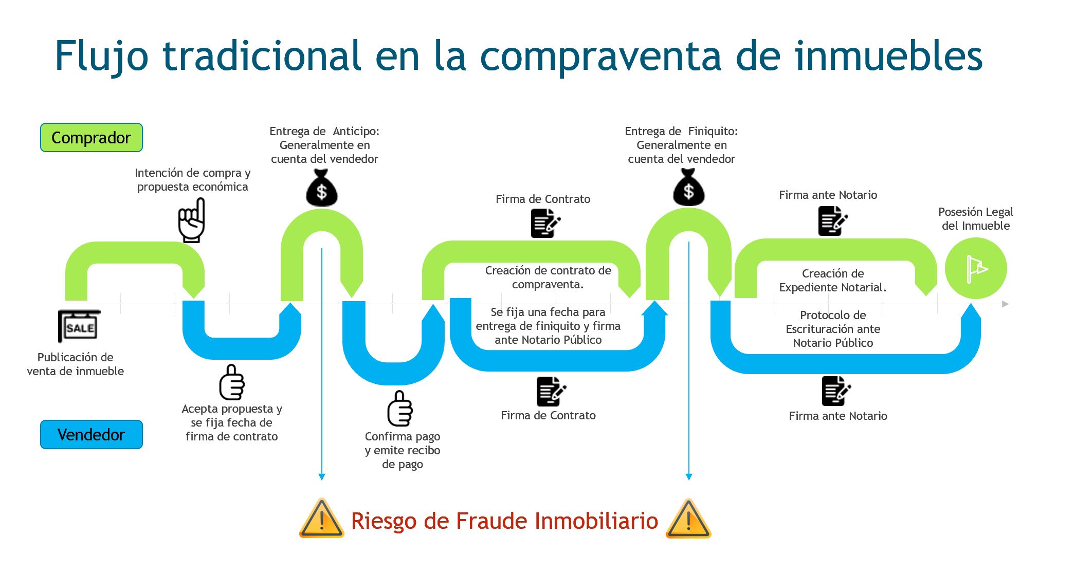 En México cada año se producen incontables y millonarios fraudes relacionados con la compraventa de inmuebles. Muchos de estos casos son propiciados gracias al “tradicional” pero deficiente proceso de compraventa que impera en las transacciones entre particulares y que no ha sufrido cambios desde hace décadas.