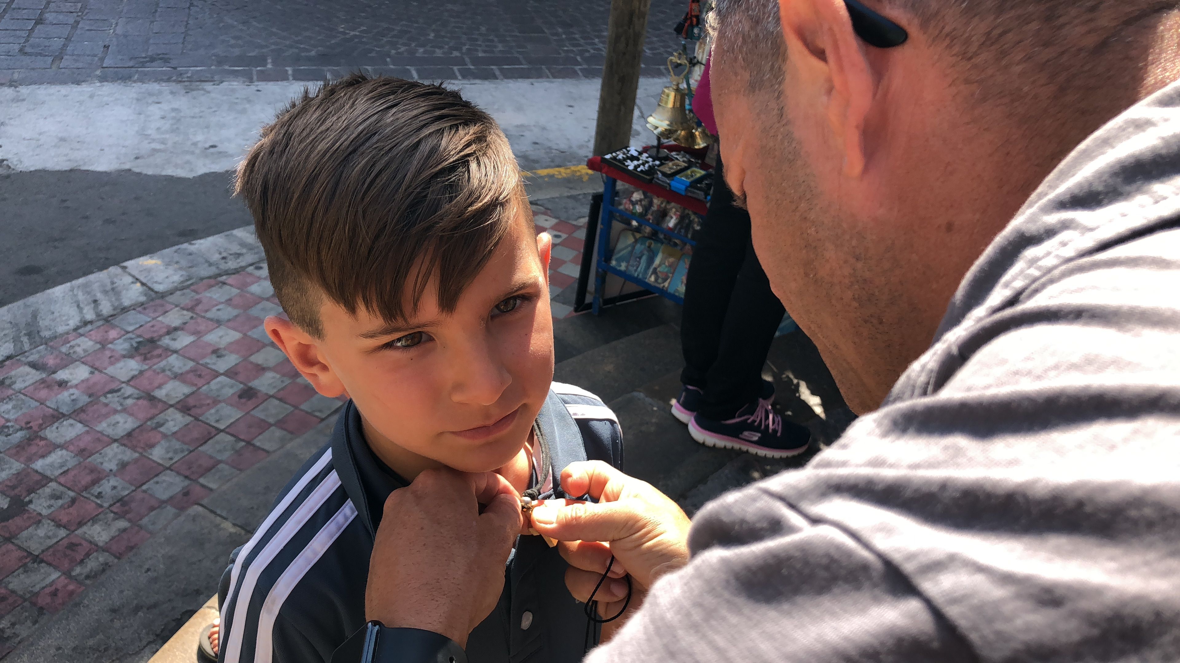 Afterwards, we left and there were a couple of religious stands selling a variety of items. We bought him a beautiful wooden cross to remember his big day!