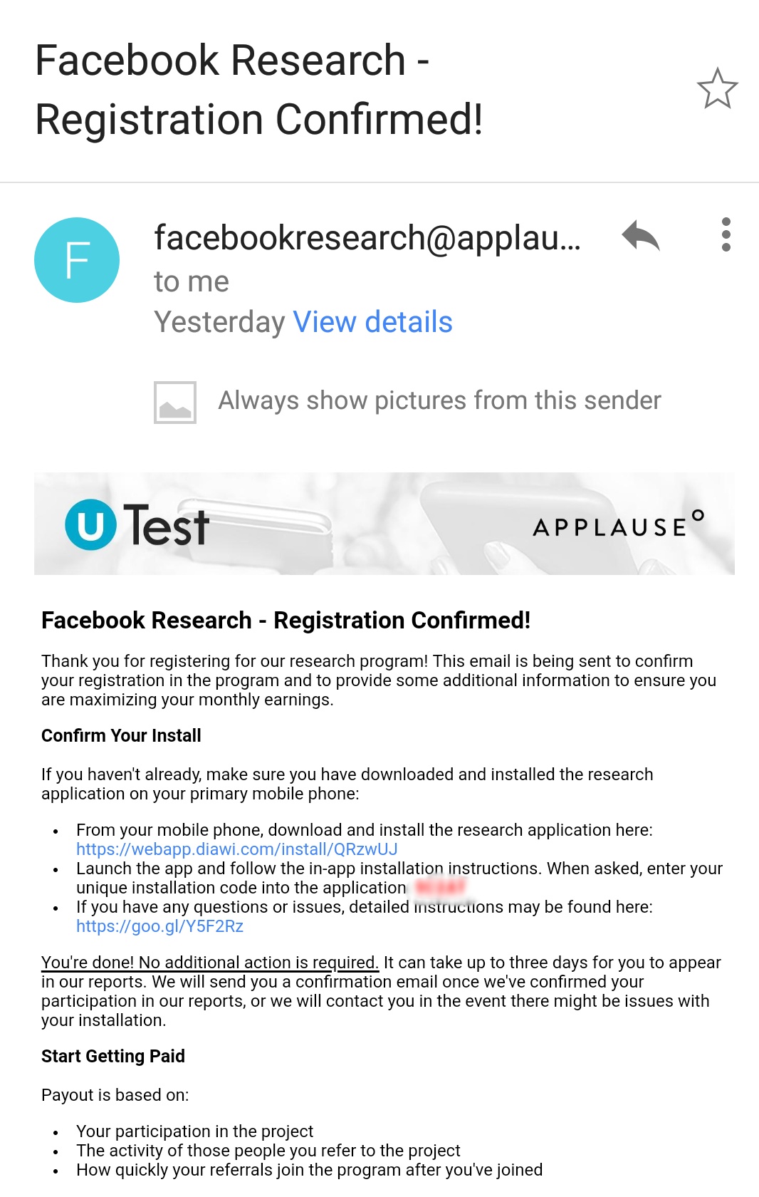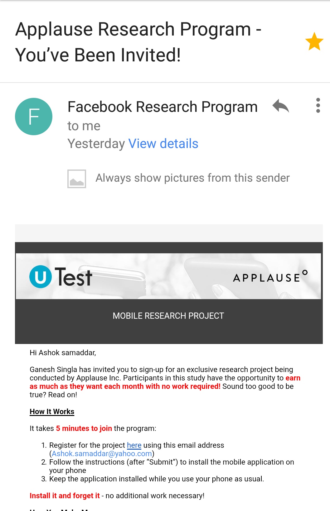 you use your PAYPAL registered email for this Facebook research program