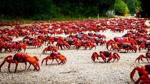 Red Crab Christmas Island: More than 50 millions red crabs lived in Christmas Island located in Indian Ocean. Usually in the last quarter of the calendar year, these animals travel from the island to the sea-shores to lay eggs. The inhabitants of this island take undue care to avoid any accidental death of these creatures. Even traffics are diverted & some roads are closed during peak migration season.