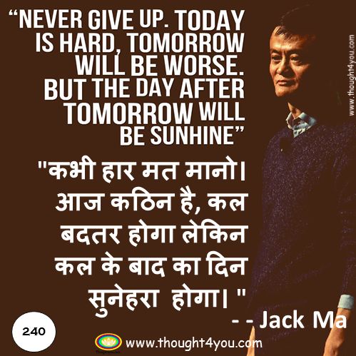 4#:-Never give up . Today is hard tomorrow will be worse but the Day after tomorrow will be shine :-jack ma( founder Ali baba)
