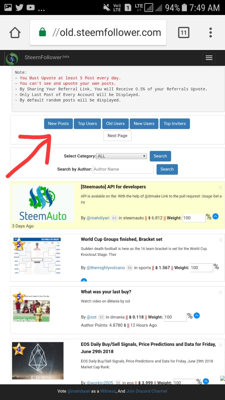इस साइट का नाम है steem followers जो कि steem का पार्ट है इस साइट के जरिए आप अपने followers ओर अपनी पोस्ट पर upvote पा सकते हो इसमे सब ऑटोमैटिक होता है आपको steem followers me जाके अपना steem account login करना है और ओर वाह आपको अच्छी अच्छी 10 पोस्ट पर 10 upvote करना है ओर follow भी कर लेना है इसके बदले आपको आपकी post पर 10 upvote and 10 followers मिल जाएँगे इससे आपकी रैंक भी बढ़ जाएगी ओर अर्निंग भी बढ़नी स्टार्ट हो जाएगी