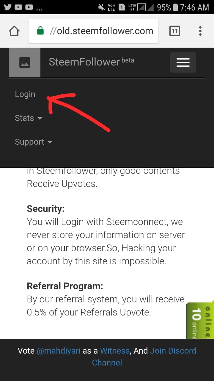 सबसे पहले आपको steemfollower साइट ओपन करनी है या इस लिंक से login करना है