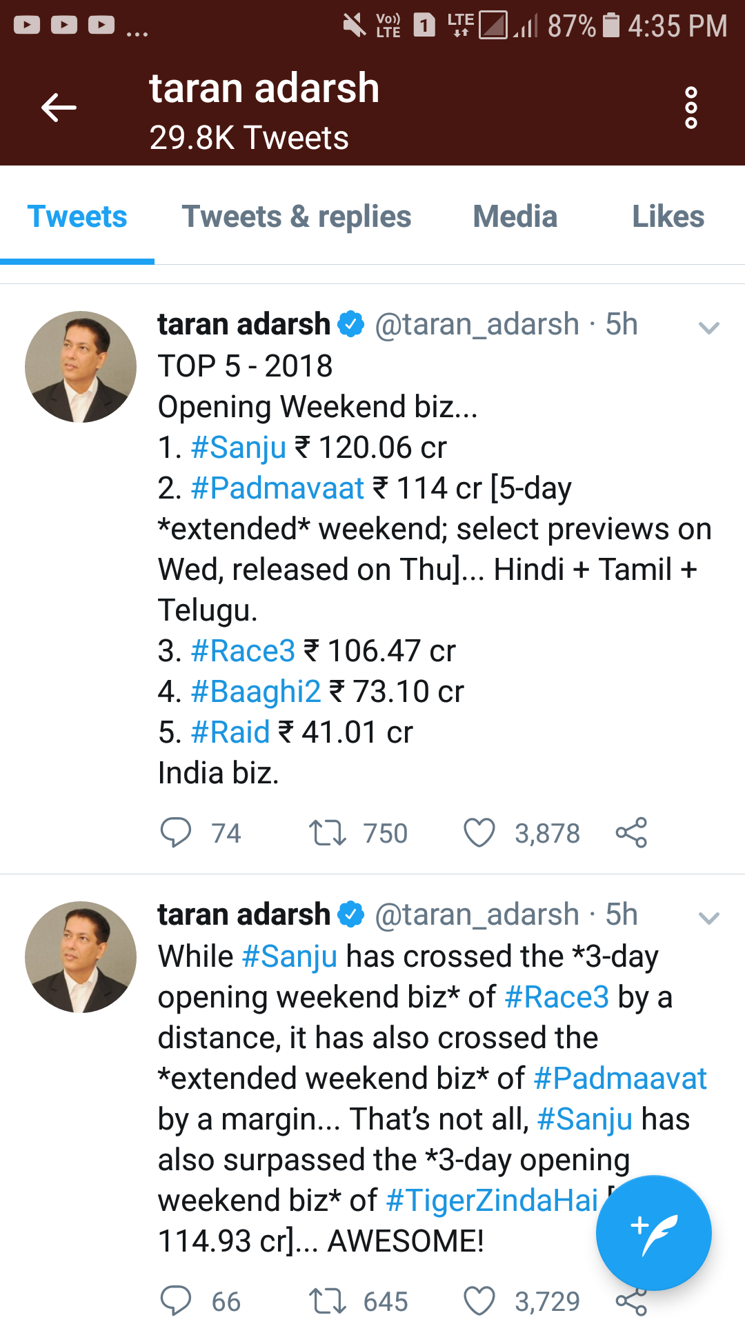 Trade analyst Taran Adarsh's tweet left behind Bahubali in Sunday's earnings