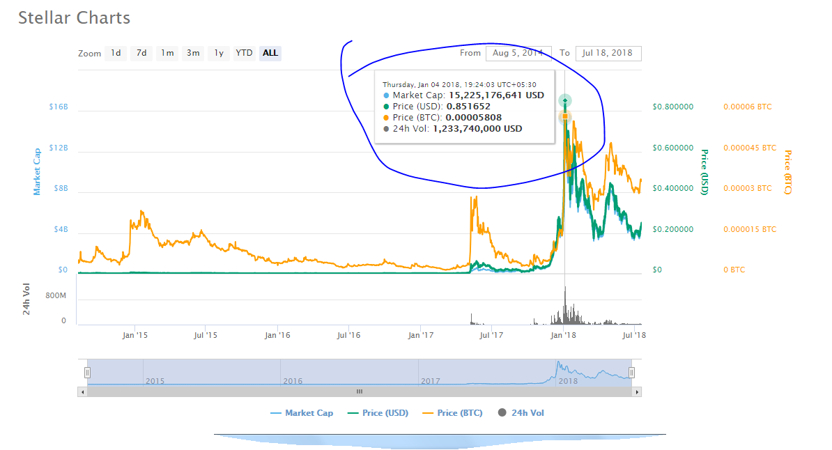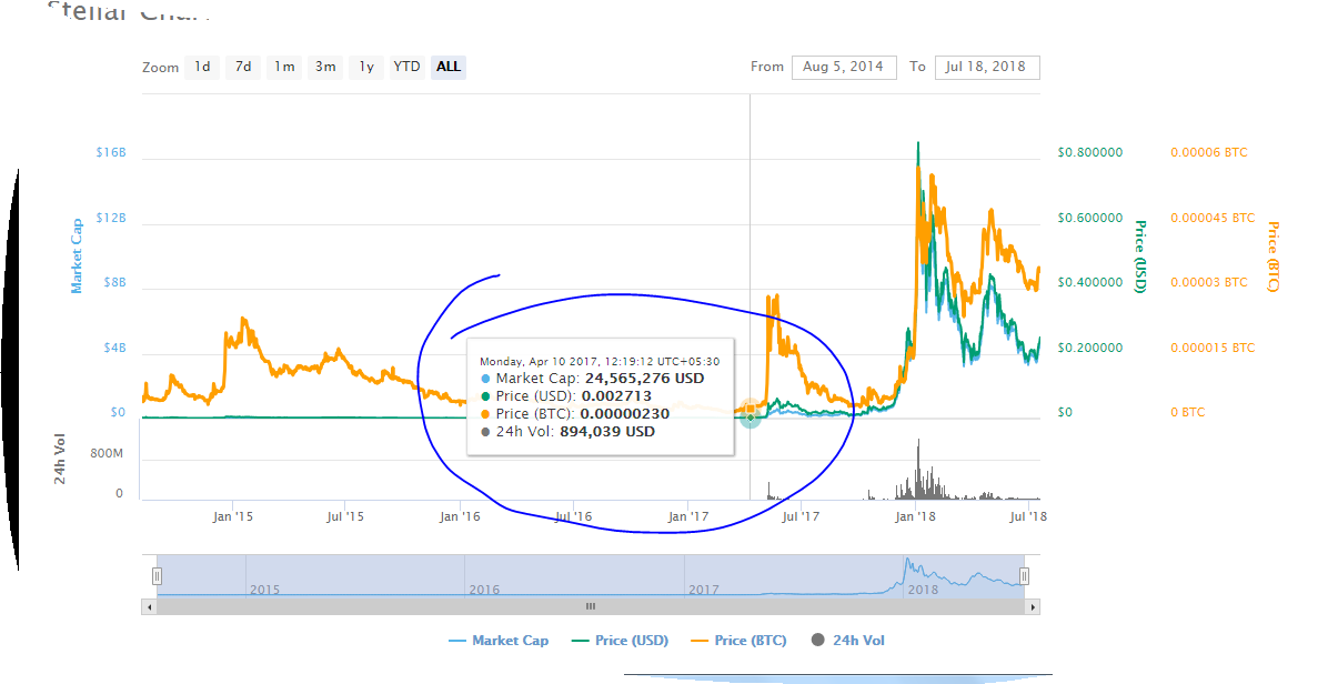 If you invested just $2500 in Stellar Lumens at the beginning of the last year 2017. Then you could have made a million dollars. I repeat if you would have invested just 2500 bucks around march of last year and then you got out at the right time. You could have been a millionaire. Just look at the stats. To
