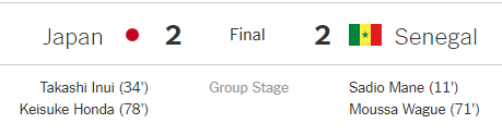 Japan vs Senegal World Cup Draw