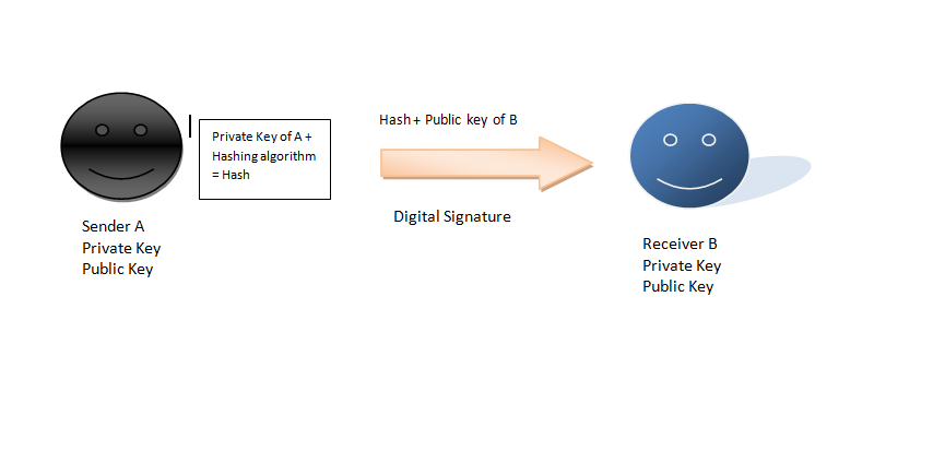 - This hash and public key of Receiver B is sent over the network in the form of Digital Signature.