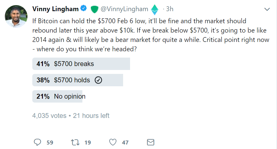 $5,700 seems unlikely to hold but based on a long-term perspective using Elliott waves, this correction should be shorter and of a different nature than the 2014 one.