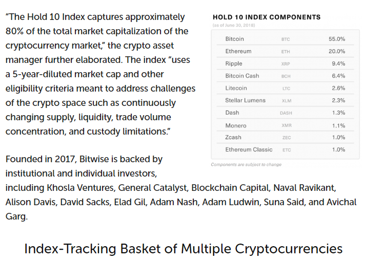 Index ETF Tracking 10 Cryptocurrencies Filed With SECsteemCreated with Sketch.mayankpatel9998 (34)in #mgsc • 8 years ago #money #cryptocurrencies #bitcoin #crypto